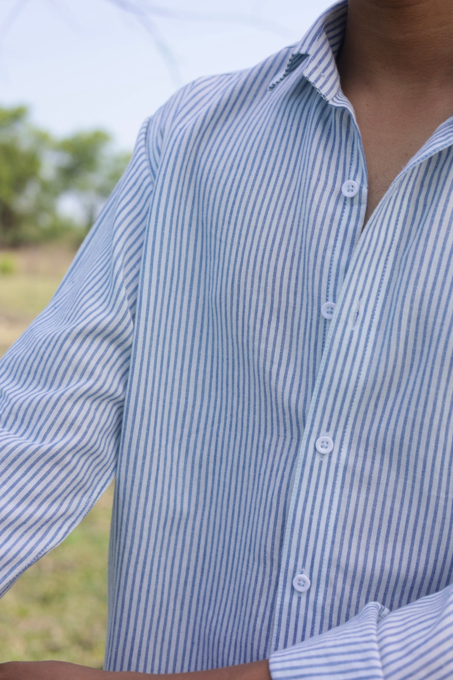An easy button-down cut from breathable cotton with fine coastal stripes. Designed with a relaxed fit that works just as well tucked in as it does worn loose. Lightweight, versatile, and perfect for everyday layering.